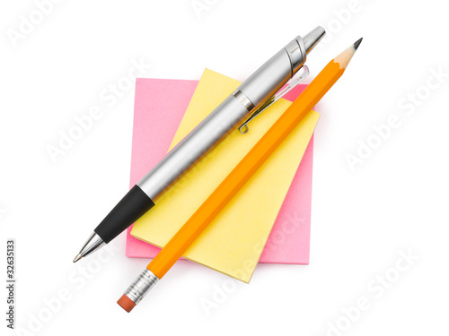 © Nikolai Sorokin, Fototapeta premium Note paper and pens