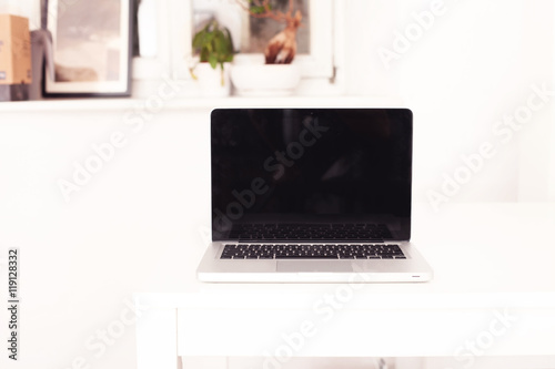 Fototapeta premium Notebook auf dem weißen Schreibtisch