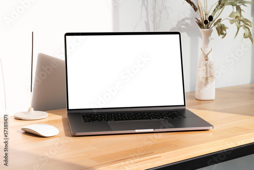 Fototapeta premium Notebook mockup with vase and eucalyptus