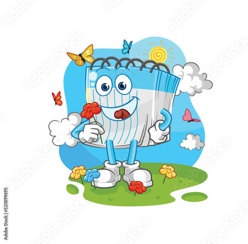 © dataimasu, Naklejka premium notebook pick flowers in spring. character vector