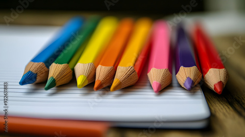 © Daniel, Naklejka premium Notebook with colored pencils for adding text
