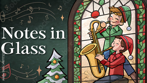 © Simon, Obraz premium Notes in Glass Kids Playing Saxophone in Stained Glass