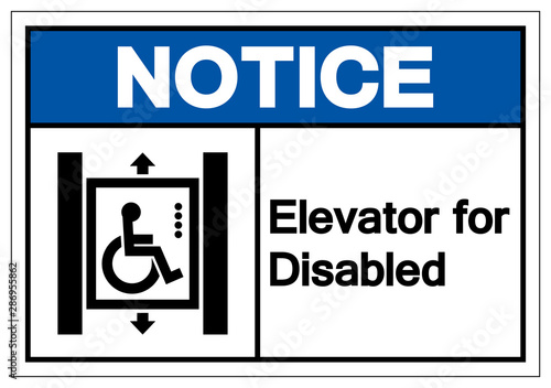 © ยงยุทธ จันทะบุตร, Fototapeta premium Notice Elevator for Disabled Symbol Sign, Vector Illustration, Isolated On White Background Label .EPS10