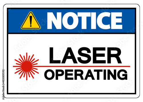 © Seetwo, Fototapeta premium Notice Safety Sign Laser Operating On White Background