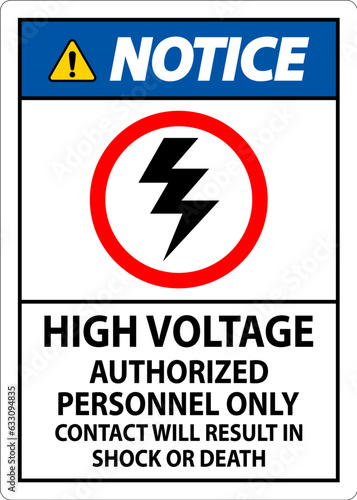 Fototapeta premium Notice Sign High Voltage, Authorized Personnel Only, Contact Will Result In...