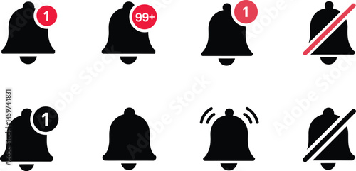 © Vector art Design, Fototapeta premium Notification Bell Icon Set with Read, Unread, Muted, and Active Indicators
