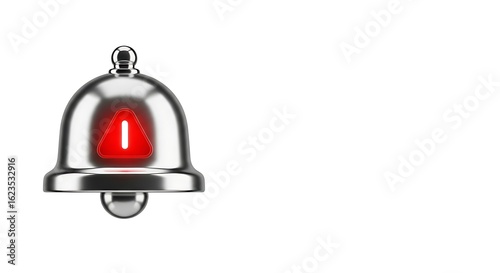 Obraz premium Notification bell with red triangle isolated on white background