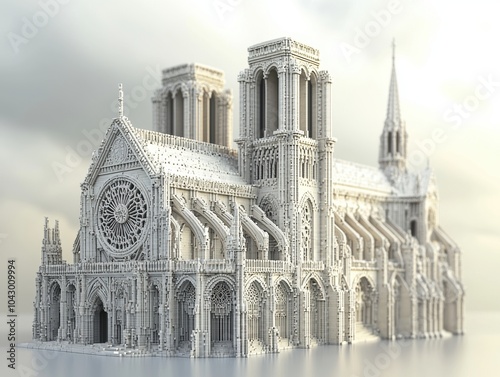 © Maetinee, Fototapeta premium Notre Dame Cathedral facade with flying buttresses