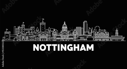 Fototapeta premium Nottingham Skyline Outline with UK, Cityscape, and Minimal.