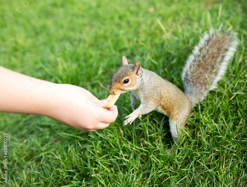 © PhotoKD, Naklejka premium Nourrir un écureuil