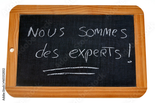 © Richard Villalon, Fototapeta premium Nous sommes des experts écrit sur une ardoise