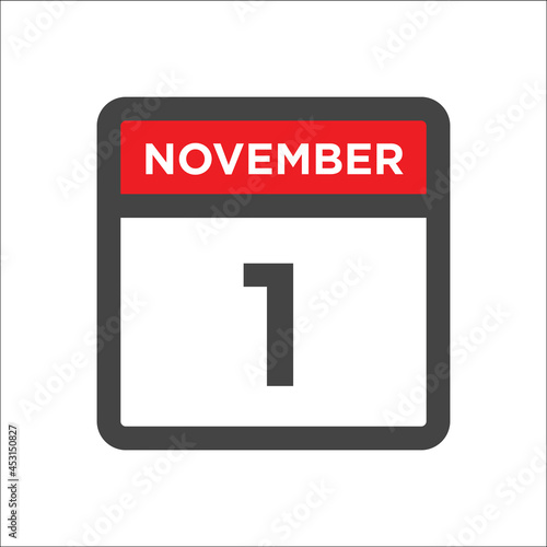© bearsky23, Fototapeta premium November 1 calendar icon with day and month
