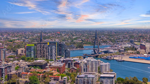 © Elias Bitar, Naklejka premium 18 November 2025 Panoramic night view of Sydney Harbour and City Skyline of NSW Australia beautiful colourful skies on a beautiful spring day