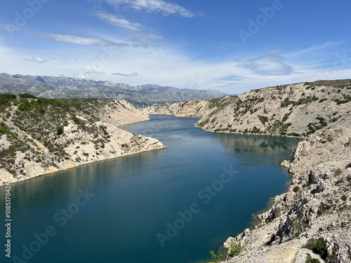 © Mario, Fototapeta premium Novsko Zdrilo, a strait of the Adriatic Sea in Croatia between the Novigrad Sea and Velebit Channel - Novsko ždrilo, morski prolaz između Novigradskog mora i Velebitskog kanala (Maslenica, Hrvatska)