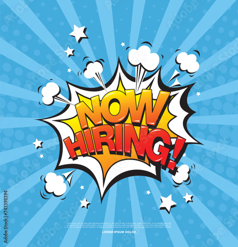 Obraz premium now hiring banner layout design, vector illustration