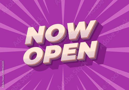 © Adipra, Fototapeta premium Now open. Text effect in 3D style with good colors