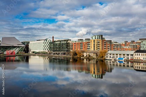 Obraz premium Nowoczesna architektura nabrzeża Hanover Quay w Grand Canal Dock, Dublin,...