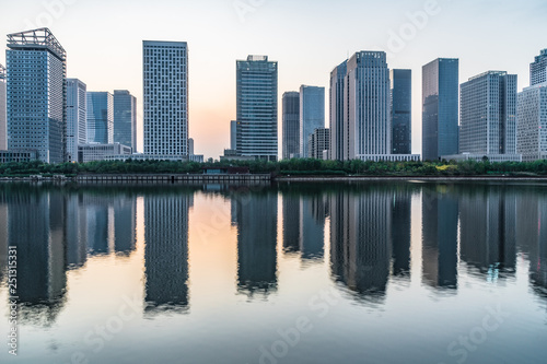 Naklejka premium nowoczesne miasto nabrzeża w centrum miasta, Chiny.