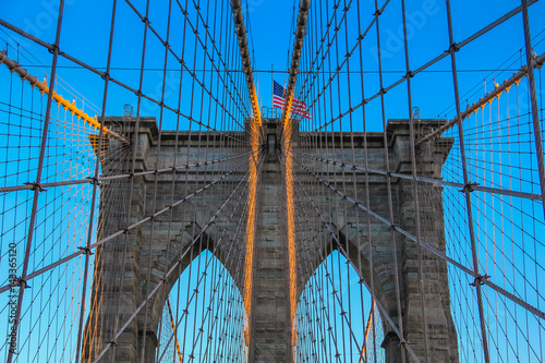 © Guilherme, Obraz premium Nowy Jork - amerykańska flaga na Brooklyn Bridge
