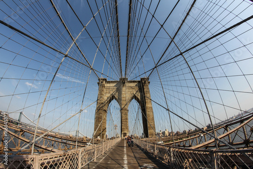 © Jürgen Barth, Fototapeta premium Nowy Jork: Widok typu rybie oko na Brooklyn Bridge z widokiem na Brooklyn