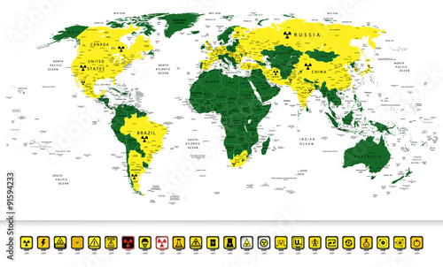 Obraz premium Nuclear power countries on a World map 2