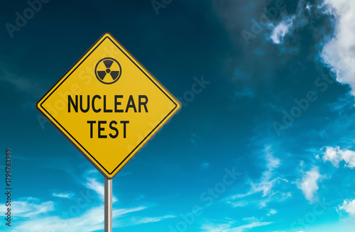 Obraz premium Nuclear Test Ahead Road Warning Sign