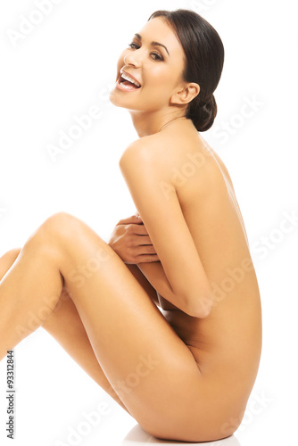 Fototapeta premium Nude woman sitting, embracing herself