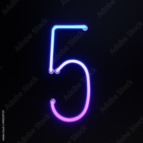 © Nikolay E, Naklejka premium Number 5, Alphabet. Neon retro 3d number isolated on a black background. 3d illustration.