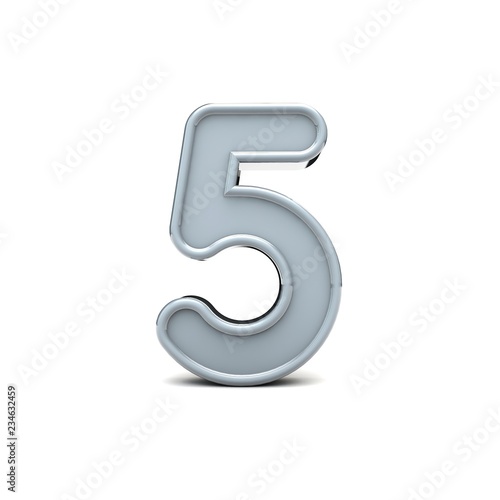 © ink drop, Naklejka premium Number 5 beveled white type. 3D Rendering