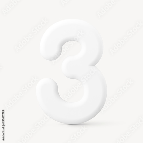 © Rawpixel.com, Fototapeta premium 3 number clipart, 3D rendering font in white