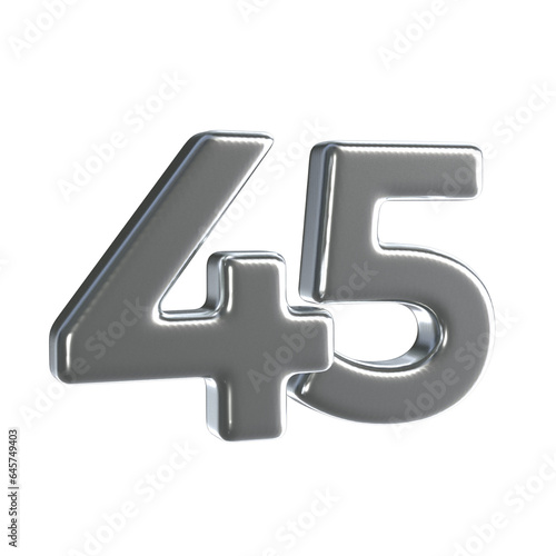 Obraz premium Number 45 3D render with Silver material