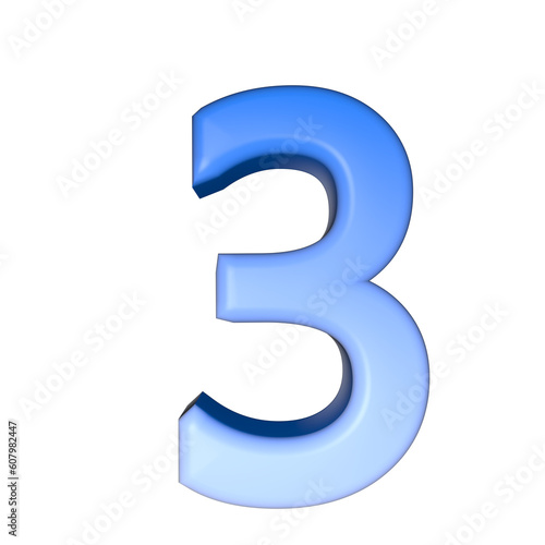 Naklejka premium number 3D rendering isolated on white background, with shadow