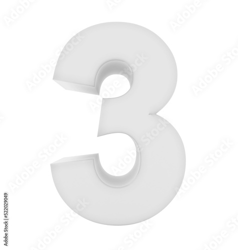 © visart, Naklejka premium number 3 3d white isolated on white - 3d rendering