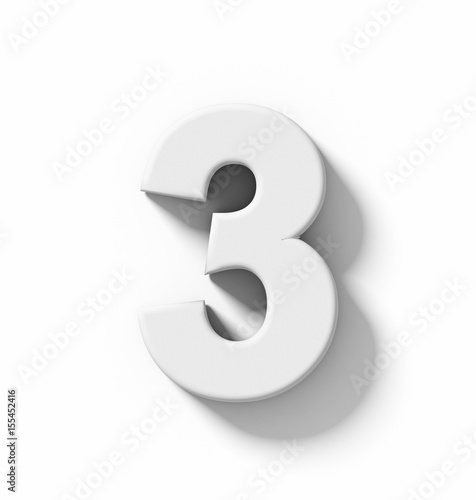 © visart, Naklejka premium number 3 3D white isolated on white with shadow - orthogonal projection