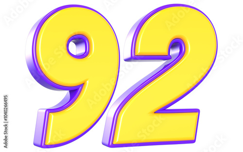 Naklejka premium 92 Number 3D Yellow And Purpale