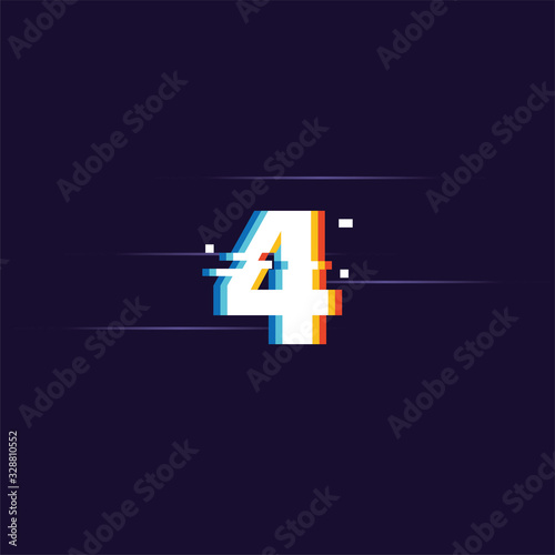 Obraz premium Number 4, Digital glitched numbers with distortion effect, Dark background
