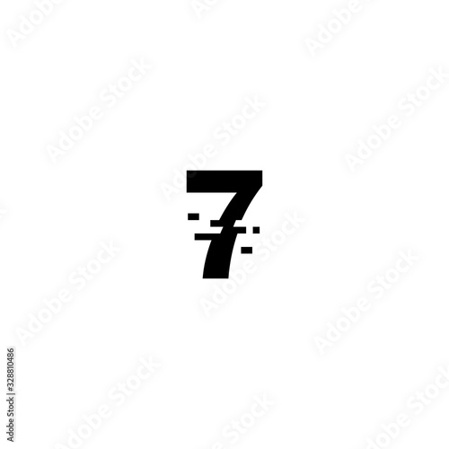© KY, Obraz premium Number 7, Digital glitched numbers with distortion effect , White background