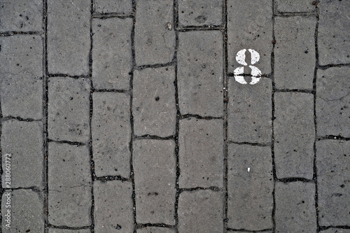 © Daguimagery, Obraz premium 8, number eight, white stencil number on cobblestone surface.