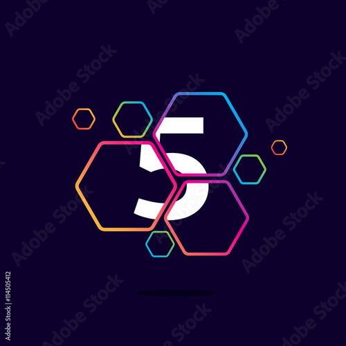 Obraz premium Number five logo in Hexagon pattern.