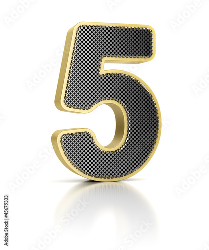Naklejka premium Number Five with perforated metal over white