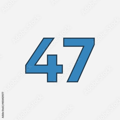 © Ali, Obraz premium Number forty seven in blue with a dark blue outline on white background.