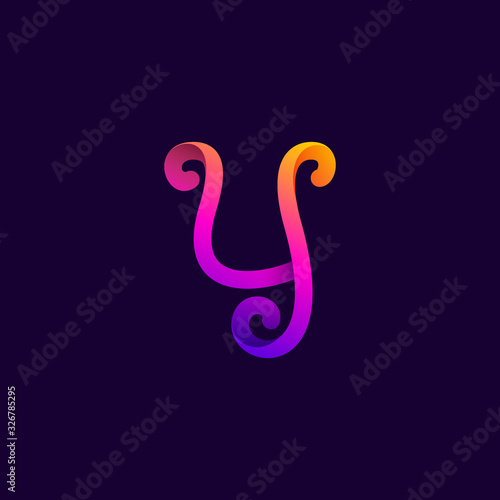 © kaer_fstock, Obraz premium Number four neon light logo.
