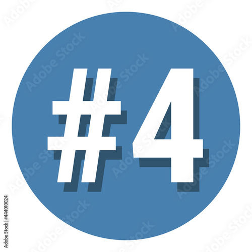 © Kostiantyn, Obraz premium Number 4 four symbol sign in circle, 4th fourth count hashtag icon. Simple flat design vector illustration.