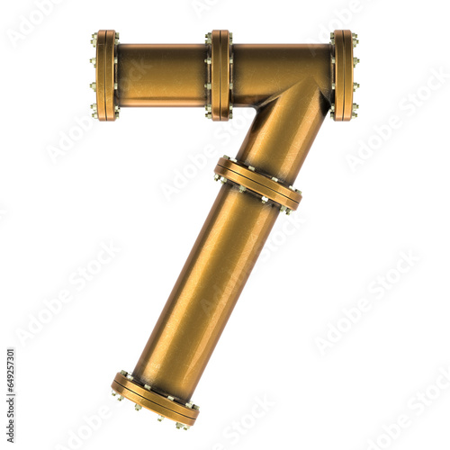 Fototapeta premium Number 7 from copper, bronze or brass pipes, 3D rendering isolated on...