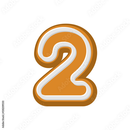 © maryvalery, Naklejka premium Number 2 Gingerbread font. Peppermint honey-cake ABC two. Cookies alphabet. Lettering biscuit