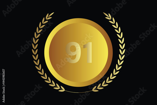 © ROKETonline, Naklejka premium number 91 icon with laurel wreath vector.