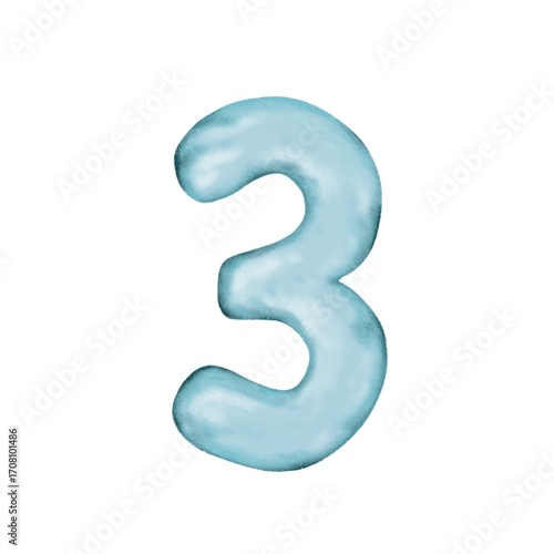 © ninimiou, Naklejka premium number 3 in a cute blue balloon vector illustration