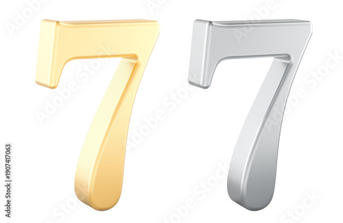 Fototapeta premium Number 7 in gold and silver. 3D rendering