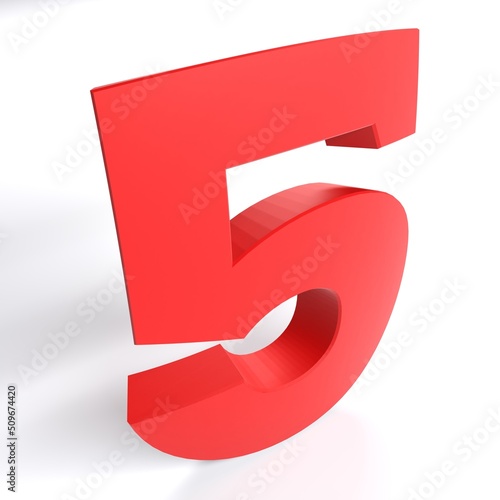 © Carlo Toffolo, Fototapeta premium Number 5 in red color isolated on white background - 3D rendering illustration