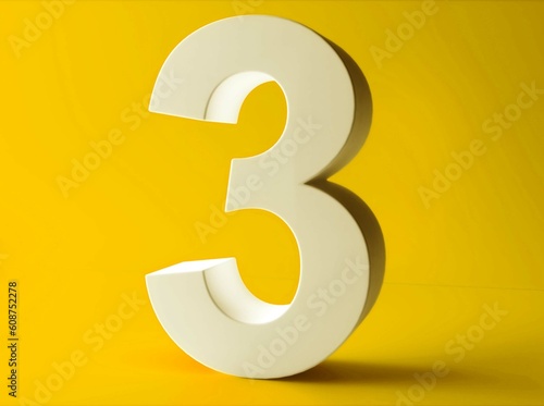 © adobedesigner, Fototapeta premium Number 3 in white on light orange background, three number isolated 3d rendering.